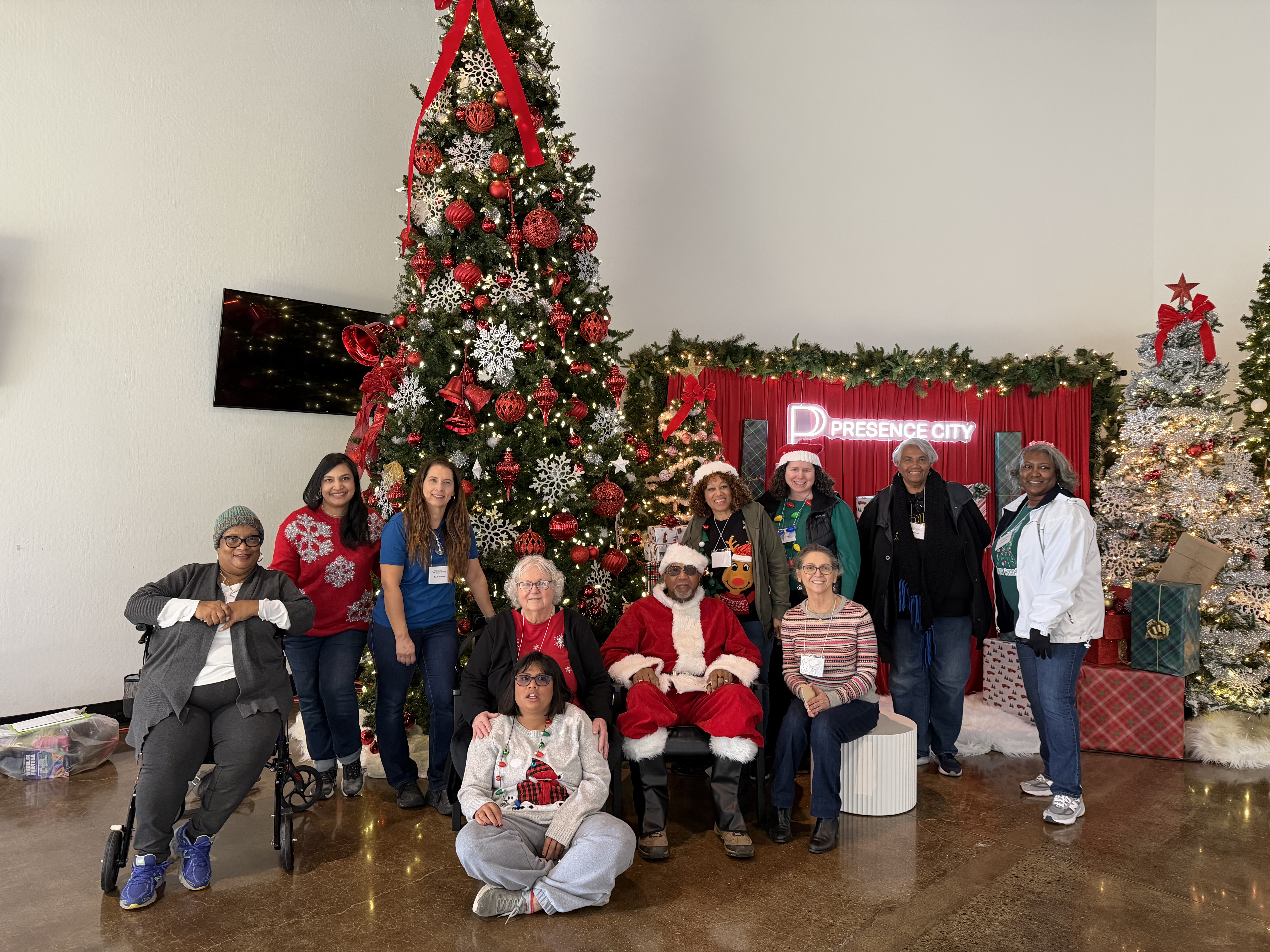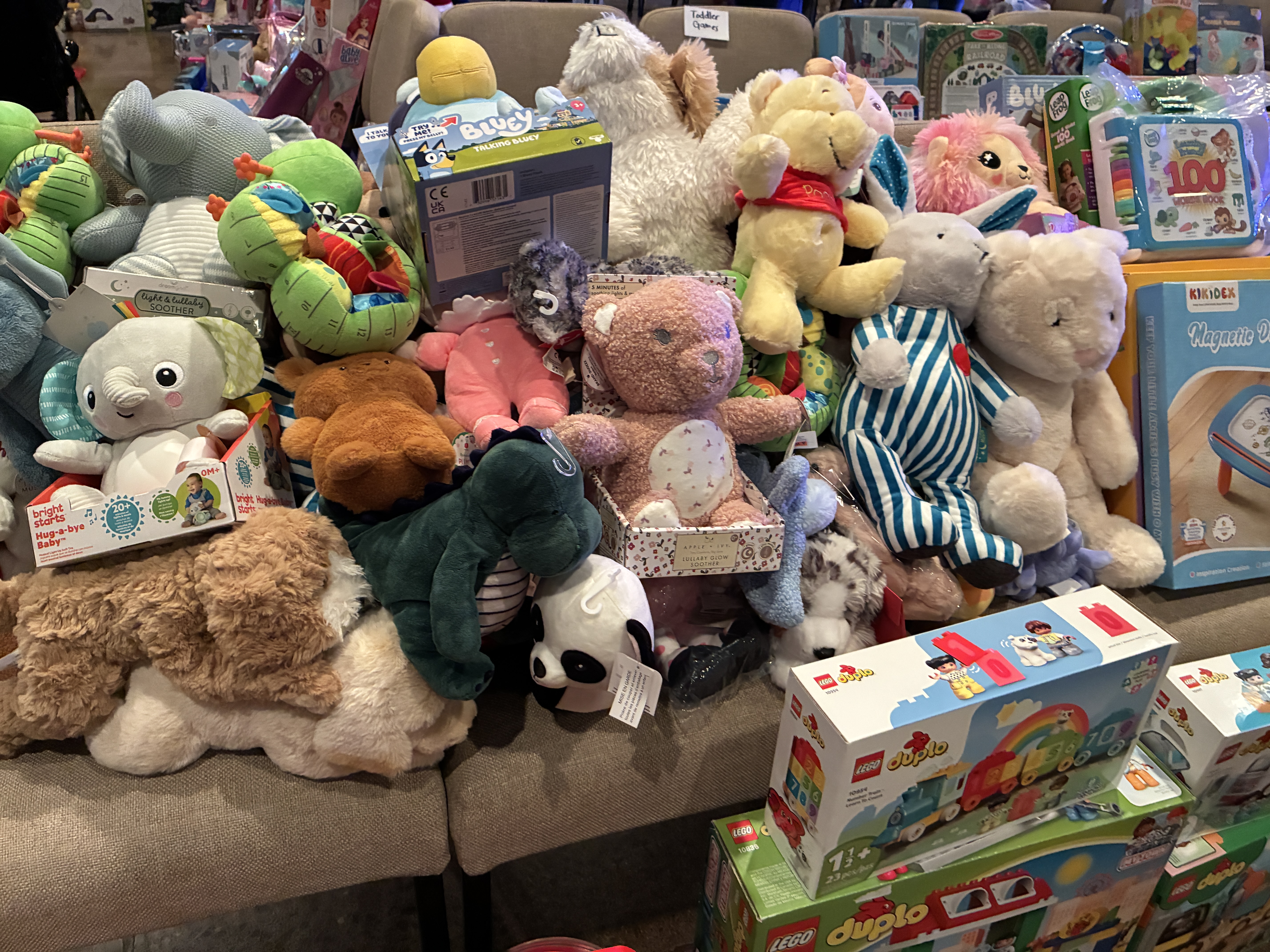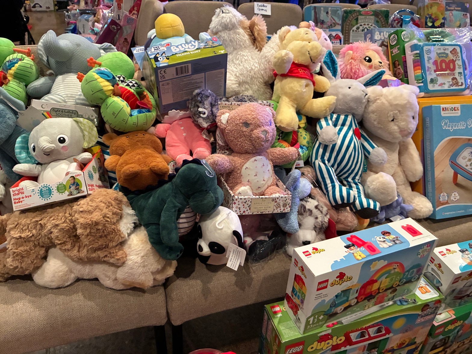 Guests were welcomed into a magical holiday atmosphere, complete with the opportunity for children to meet Santa, take photos, and hand in their holiday wish lists. Thanks to the generosity of our incredible donors, the toy section was fully stocked with an impressive assortment of toys for all ages. Dedicated volunteers escorted each child through the area, helping them choose special gifts and fill large bags to take home.
