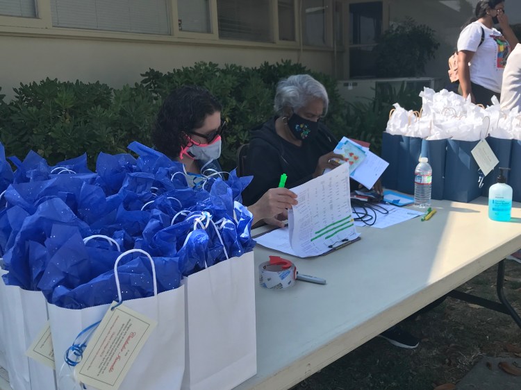 Additionally, families received goody bags that were donated to the ACFPA by two industrious High School students from Hayward, Sonal and Vanishnavi, who collected $600 and used it to fill 75 bags with crafts, toys, masks, hand sanitizers, lip balm and school supplies.